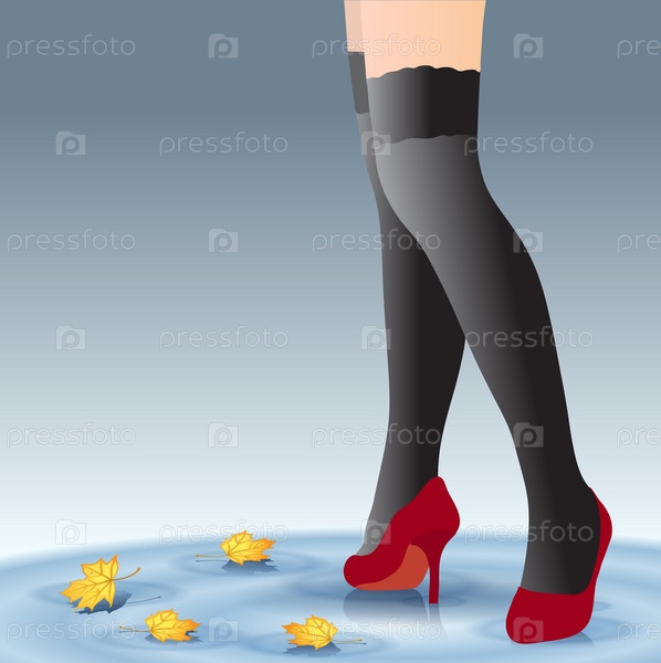 Девушка в чулках и осенние листья