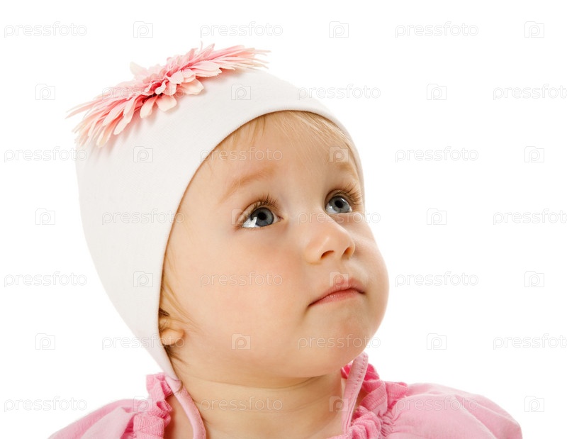 Годовалая девочка в шапке с цветком