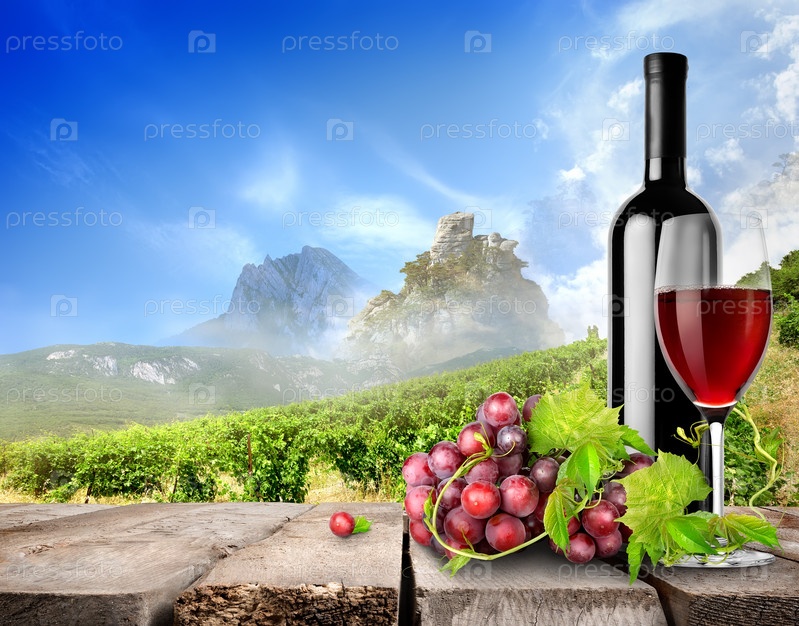 Бутылка вина и виноградники