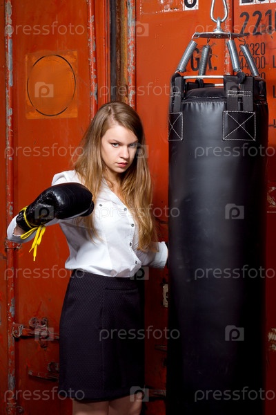 Злая бизнес-леди с боксерскими перчатками