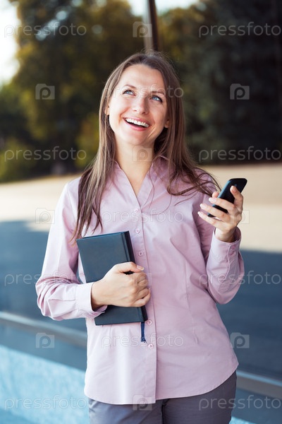 Бизнес-леди с телефоном и блокнотом