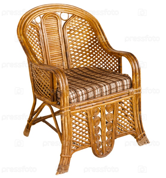 Антикварное индийское деревянное плетеное кресло, изолированное на белом