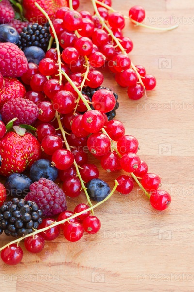Горасть свежих красных ягод на столе
