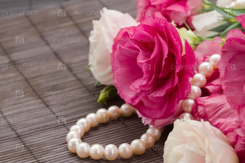 Розовые эустомы и жемчуг