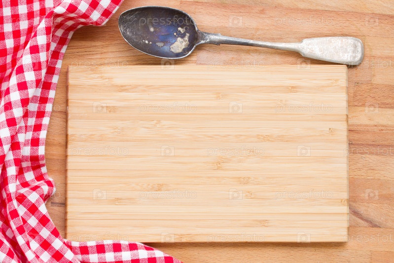 Деревянная доска, салфетка и ложка