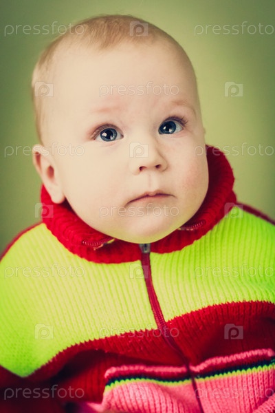 Портрет грустного мальчика на зеленом фоне