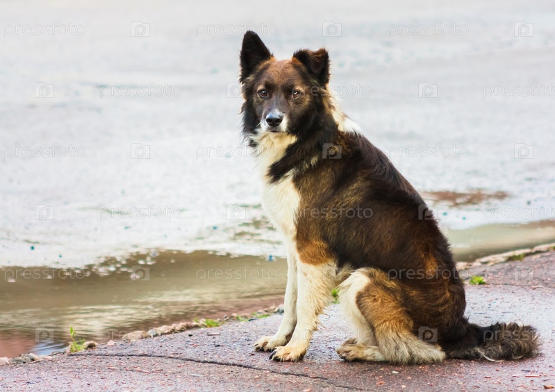 Портрет бродячей собаки на улице