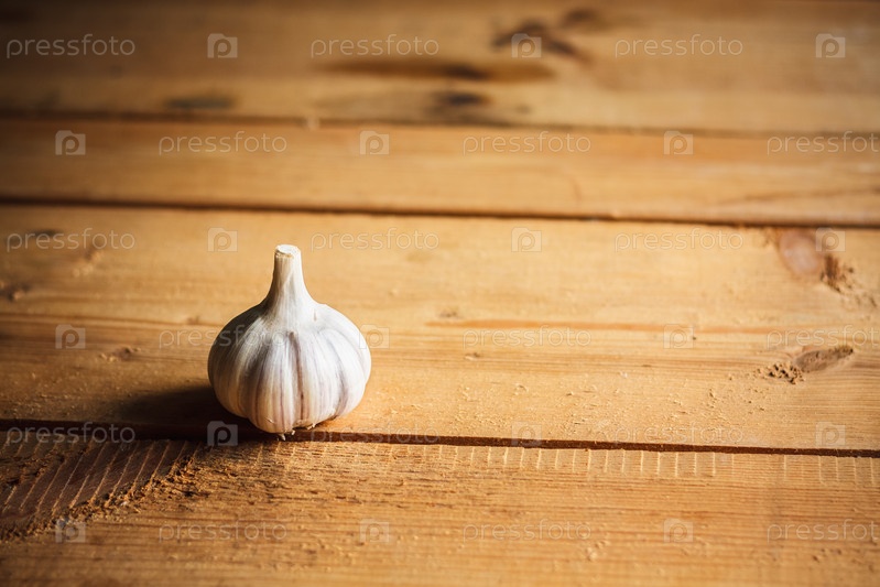 Сырой чеснок на деревянном фоне