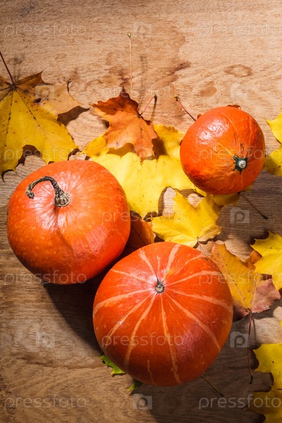 Тыквы на деревянном фоне