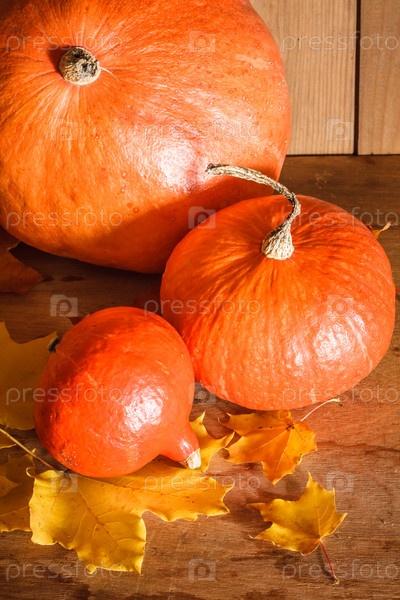 Тыквы на деревянном фоне