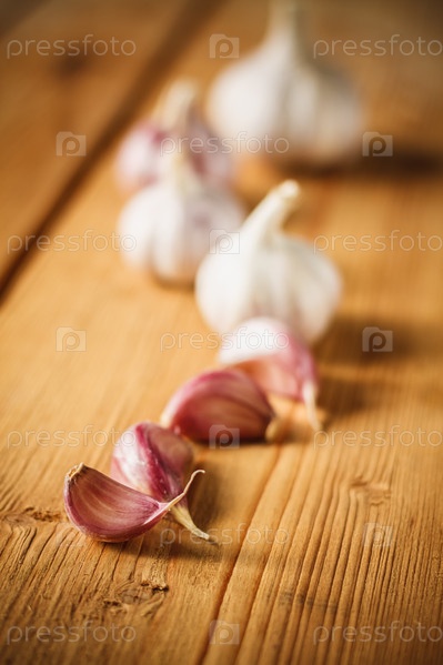Сырой чеснок на деревянном фоне
