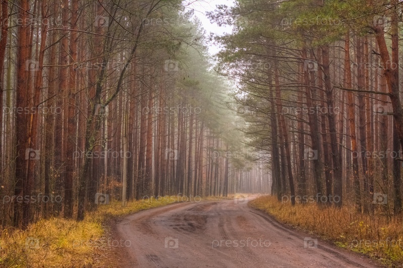 Туманная дорога в лесу