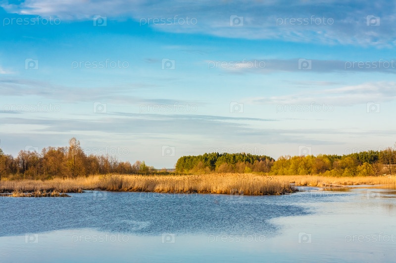 Небо и облака отражаются в озере