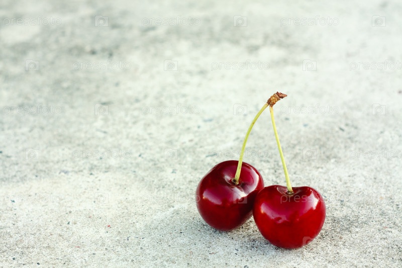 Две вишни на сером фоне