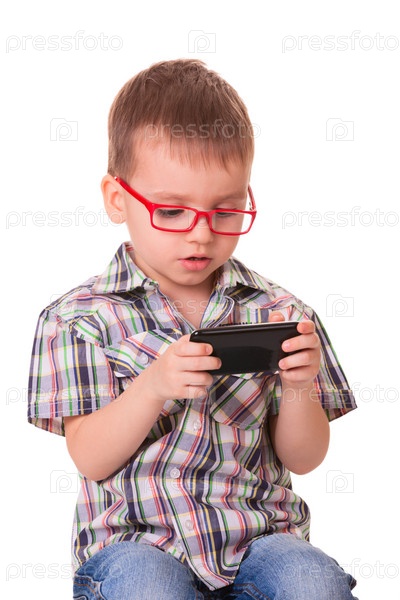 Умный малыш играет на смартфоне
