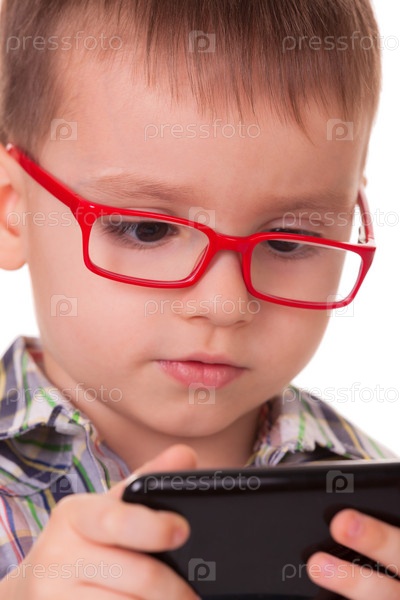 Умный малыш играет на смартфоне