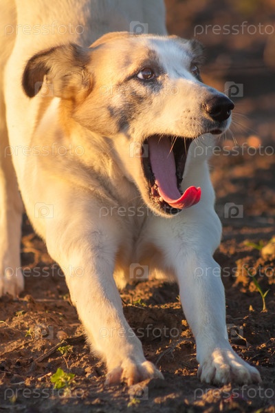 Портрет зевающей собаки крупным планом