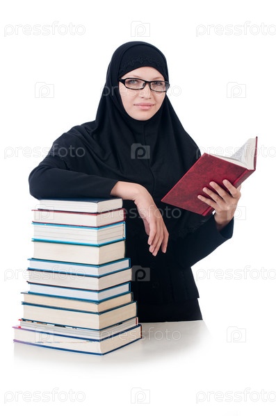 Молодая мусульманская студентка с книгами