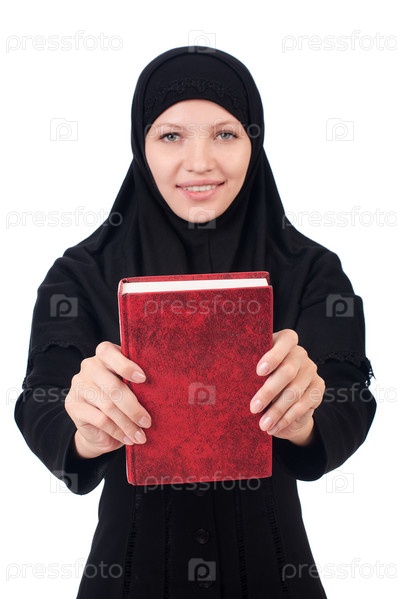 Молодая мусульманская студентка с книгами