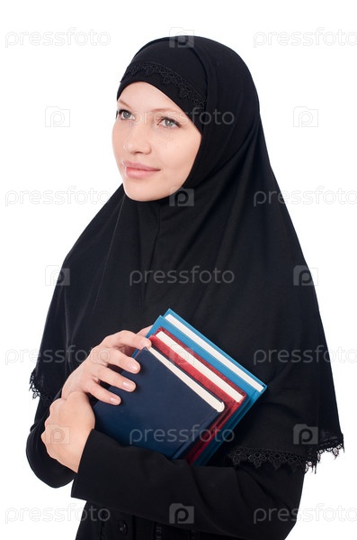 Молодая мусульманская студентка с книгами