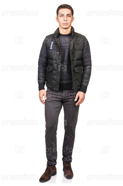 Человек в модной одежде, изолированный на белом фоне