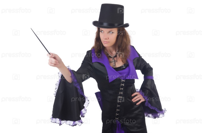 Женщина маг, изолированная на белом фоне