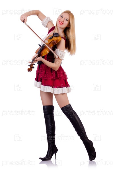 Девушка играет на скрипке на белом фоне