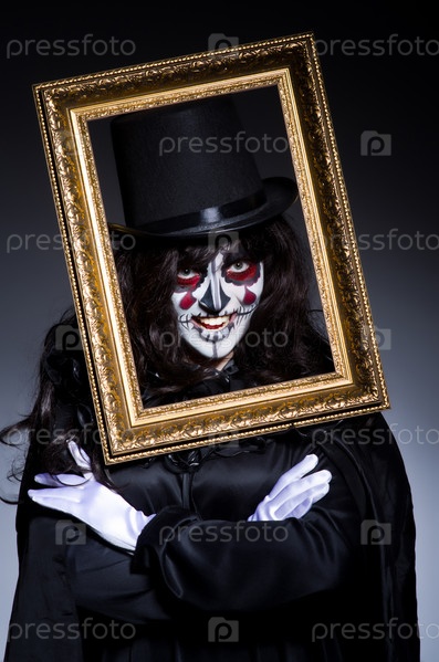 Монстр с фоторамкой в темной комнате