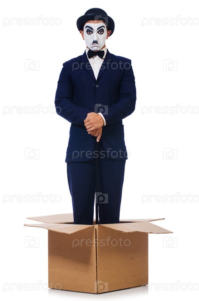 Мужчина с тростью в коробке