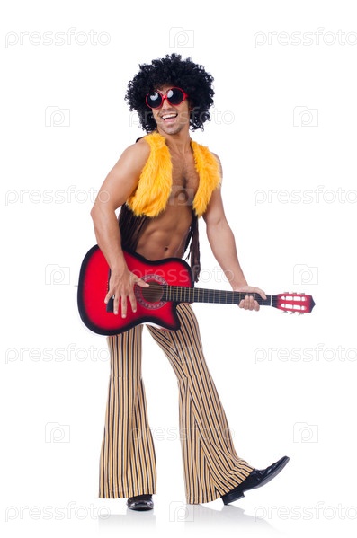 Гитарист, изолированный на белом фоне