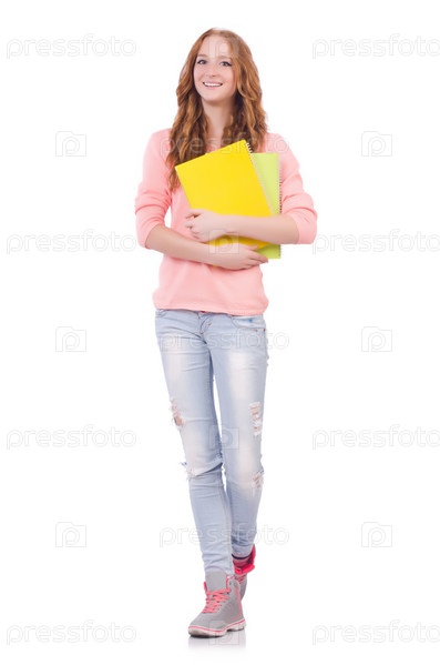 Молодая студентка, изолированная на белом фоне