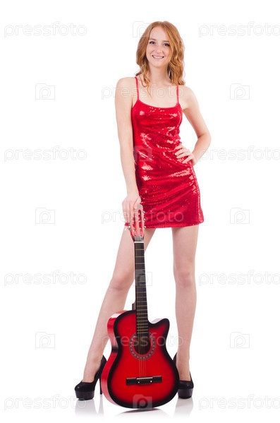 Гитаристка, изолированная на белом фоне
