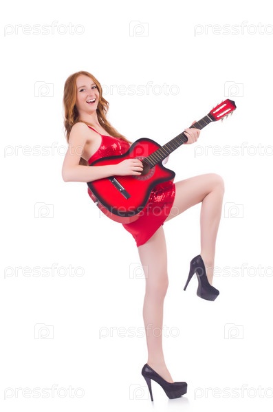 Гитаристка, изолированная на белом фоне