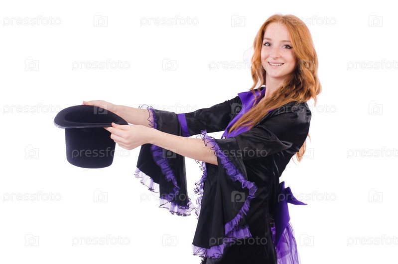 Женщина маг, изолированная на белом фоне
