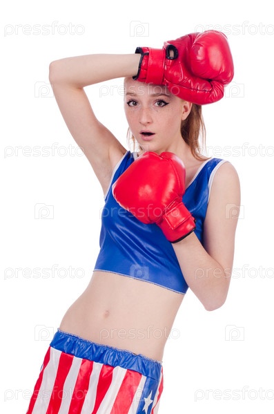 Женщина в боксерской форме с обозначениями США
