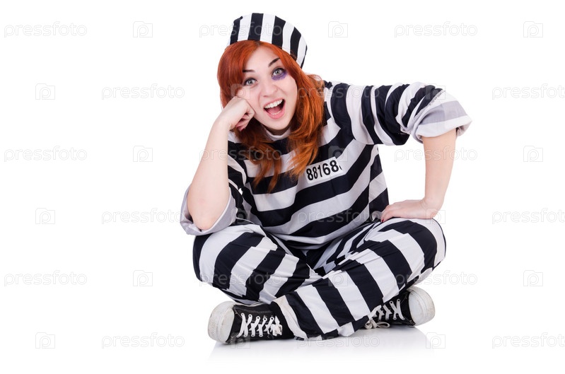 Заключенный в полосатой форме на белом фоне