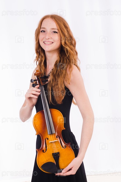 Женщина со скрипкой, изолированная на белом фоне