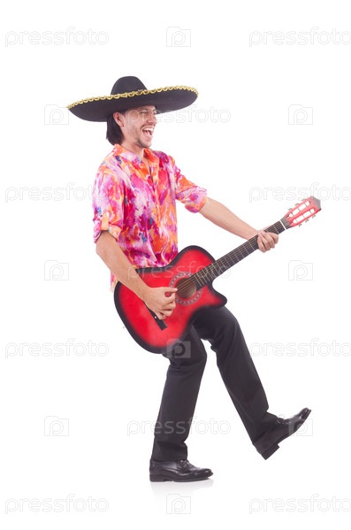 Мужчина с гитарой, изолированный на белом фоне