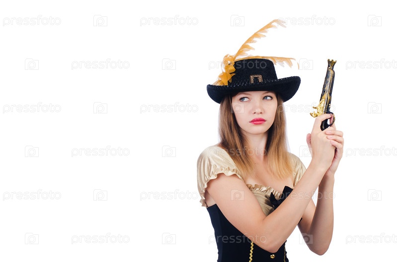 Женщина-пират, изолированная на белом фоне