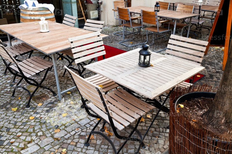 Столы пустого уличного ресторана