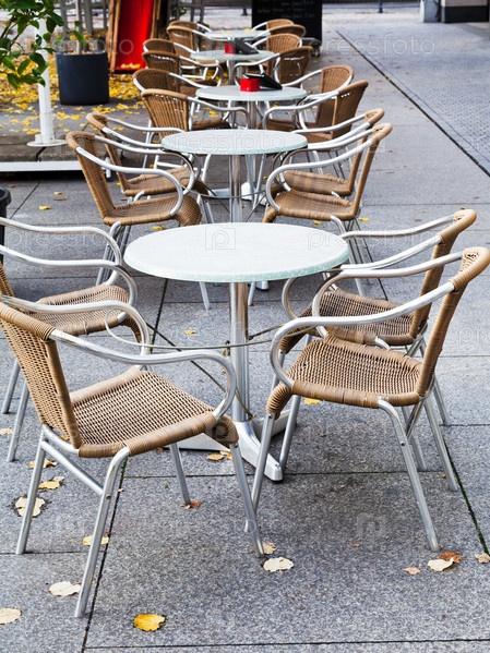 Пустой уличный ресторан осенью