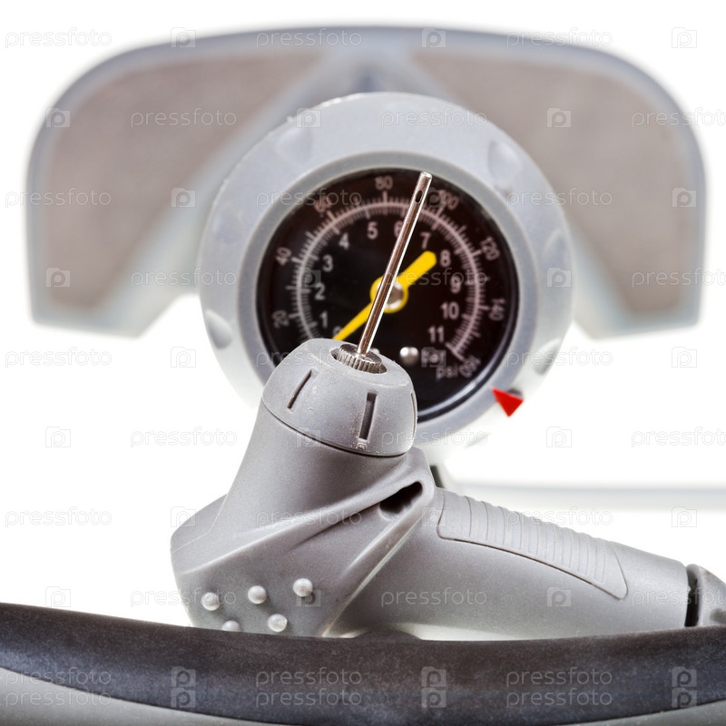 Клапан и манометр ручного насоса крупным планом