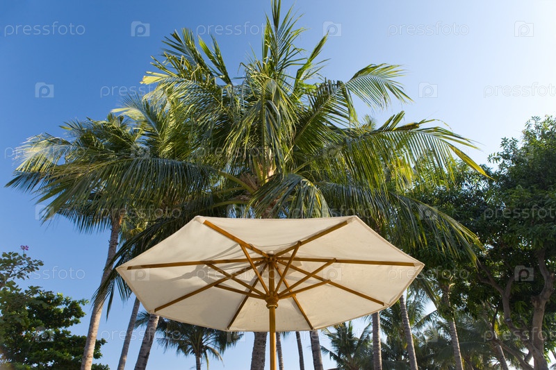 Пляжный зонт на фоне пальм