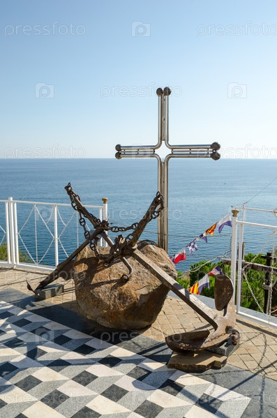 Старинные якоря возле Храма-маяка в Малореченском. Крым