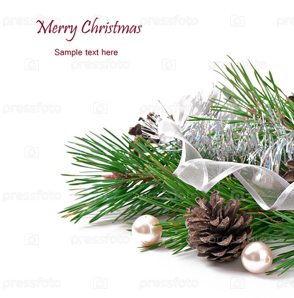 Рожденственский орнамент с шишками на белом фоне