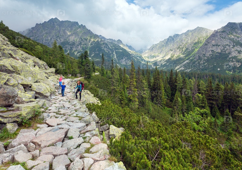 Высокие Татры (Словакия) и семья на пешеходной тропе