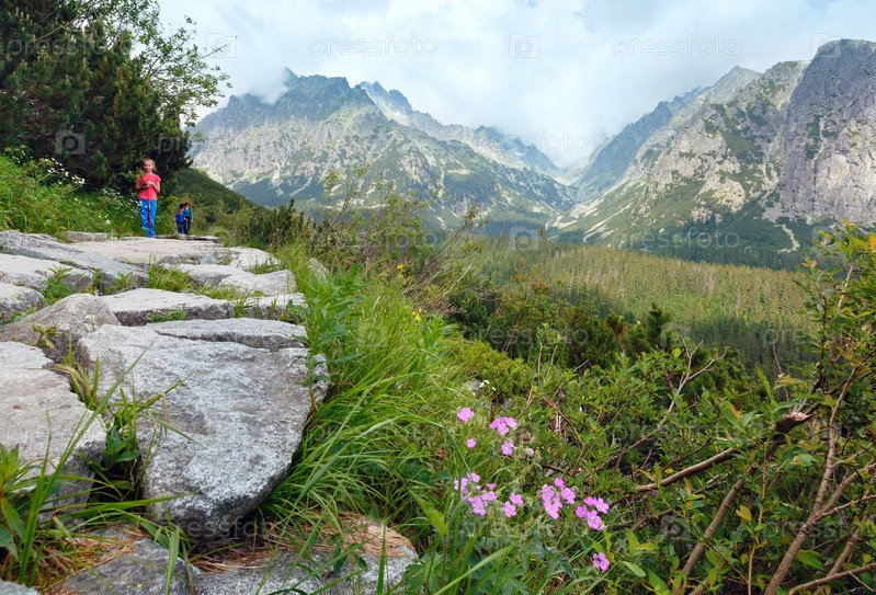 Высокие Татры (Словакия) и семья на пешеходной тропе
