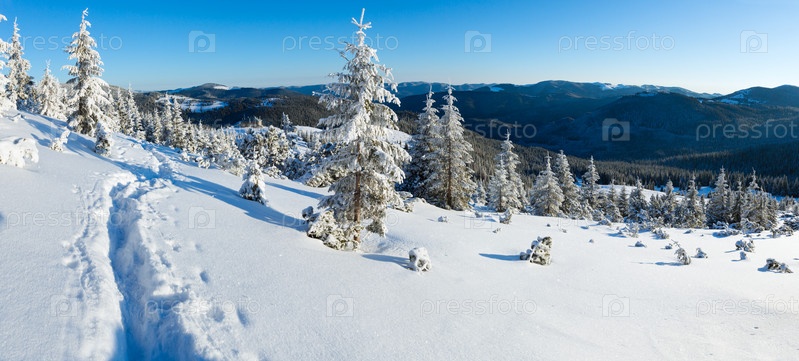 Утренний зимний горный пейзаж (Карпаты, Украина)