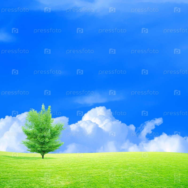 Зеленая трава под голубым небом