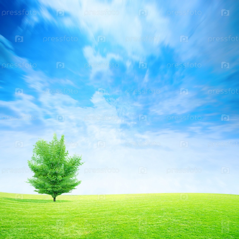 Зеленая трава под голубым небом